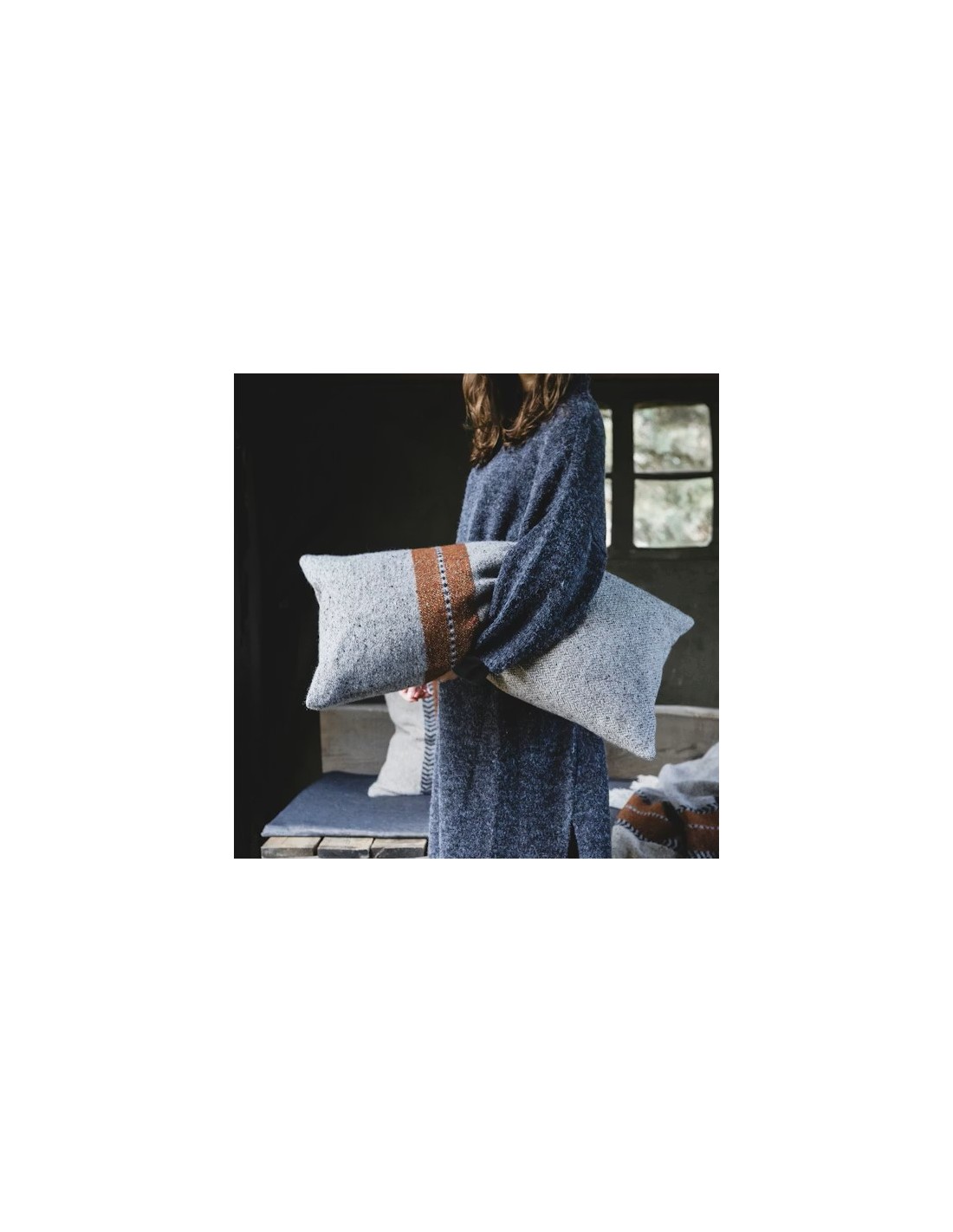 Esta colección combina tejido de espiga y liso, con un acabado lavado que le confiere grosor, volumen y una belleza excepcional. Disponible en dos nuevos colores de invierno: Gris con rayas beige, óxido y negras, y Dorado con rayas beige, verde oliva y negras.