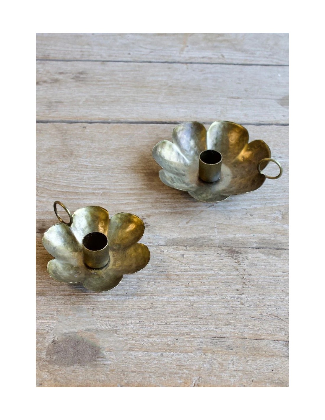 Portavelas artesanal de metal dorado con forma sencilla y atemporal. Una pieza versátil que aporta calidez y brillo sutil a cualquier ambiente, ideal para mesas, estanterías o bandejas decorativas. Hecho a mano con materiales duraderos. Cada portavelas está hecho a mano, por lo que puede presentar ligeras variaciones que subrayan su carácter artesanal y único.