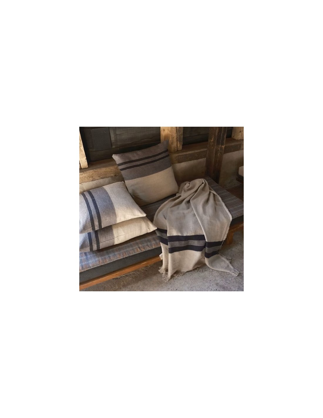 Inspirado en las casas negras que salpican los paisajes más poéticos del norte, este plaid destila fuerza contenida. La base en lino natural se entrelaza con franjas de color carbón y negro profundo, logrando un equilibrio perfecto entre sobriedad y presencia.