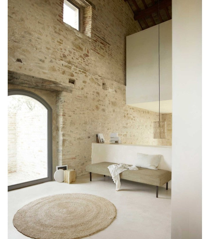 Descubre la alfombra de yute natural tejida a mano, una pieza única elaborada con fibras 100% naturales y teñida con colores orgánicos. Gracias a este proceso artesanal, cada alfombra presenta sutiles variaciones de tono y pequeños nudos que reflejan la autenticidad del tejido.