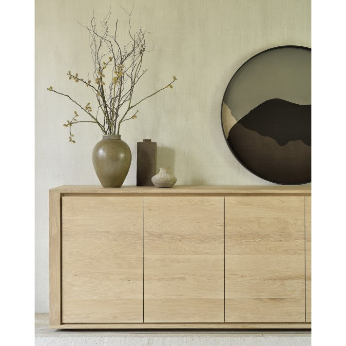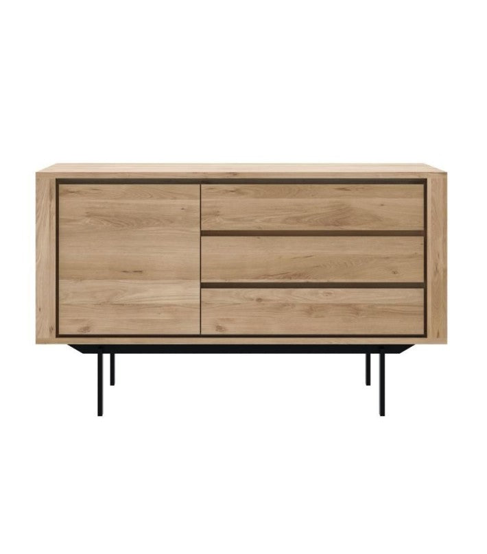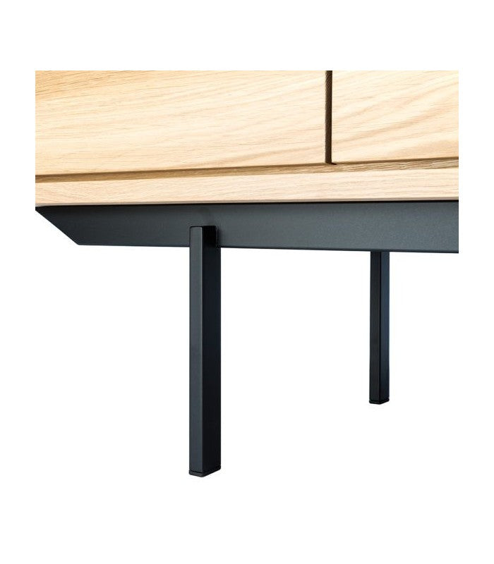 Directo y robusto con líneas decisivas. Así es el aparador Shadow de Ethnicraft, diseñado por Alain van Havre. Al colocar las patas metálicas que elevan ligeramente el aparador, podemos darle aire y elevarlo a nuevas alturas.