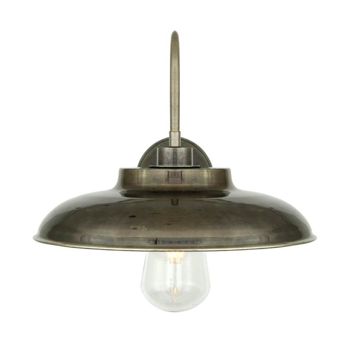 Adecuada para uso tanto en interiores como en exteriores, esta lámpara de pared de estilo de fábrica se ve genial cuando se ilumina con una bombilla cálida para una iluminación suave.