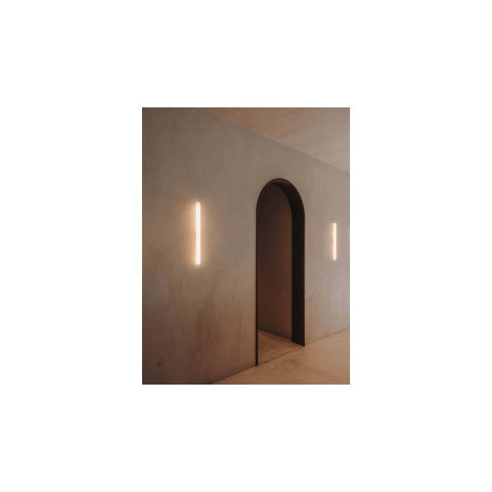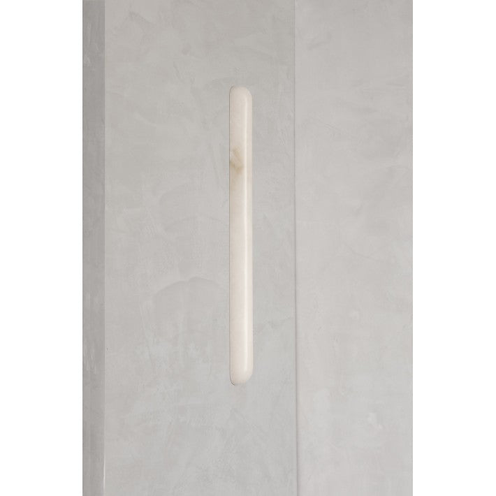 El aplique de pared 65 es una luminaria de líneas puras y estética contemporánea, elaborada a partir de una sola pieza de alabastro natural. Su forma tubular estilizada (65 cm de largo y solo 4 cm de ancho) lo convierte en una opción ideal para espacios que buscan una iluminación decorativa sutil pero con carácter.