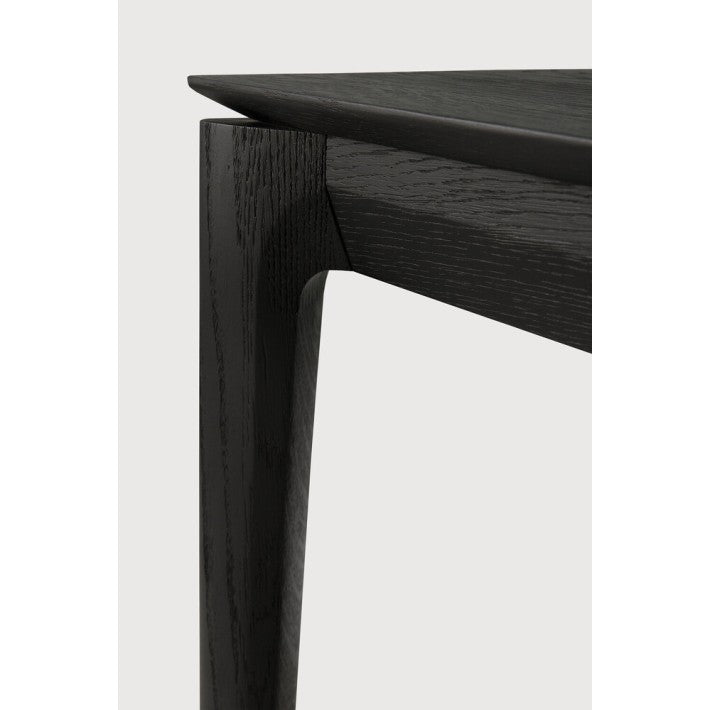 - Madera de roble macizo teñido de negro con acabado barnizado.