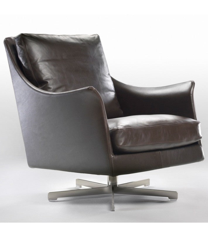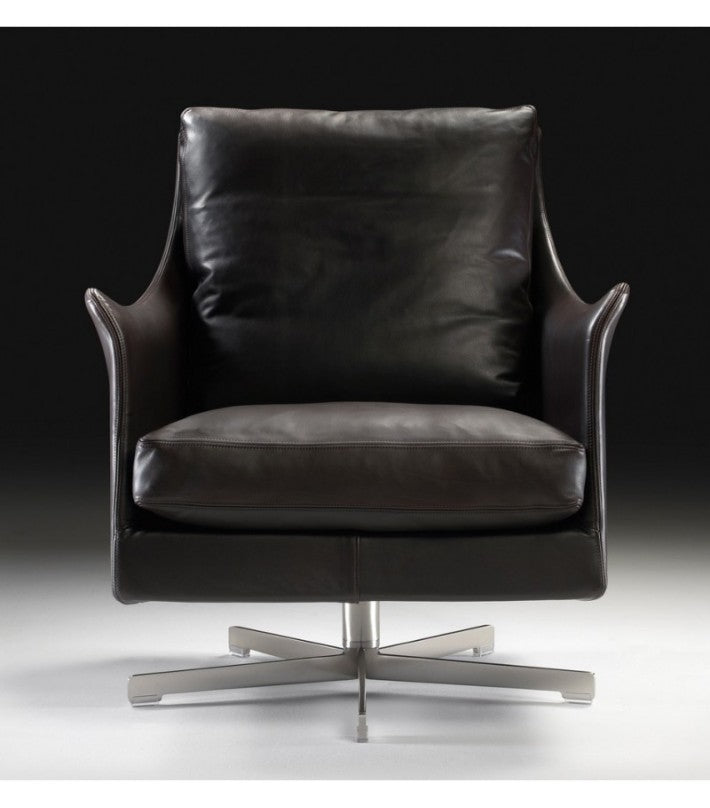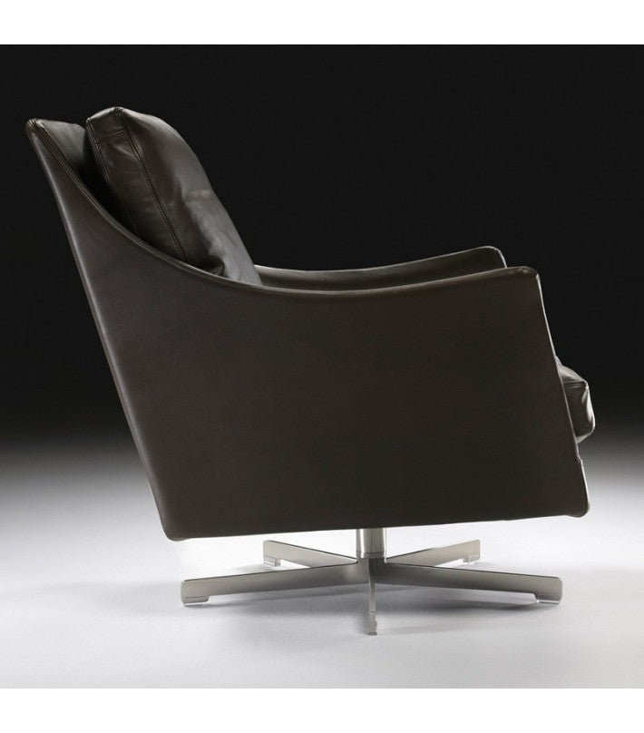 La butaca Boss de Flexform es un diseño propio de la firma integrada dentro de una colección formada por butacas en diferentes pies, reposapie y un sofá de 127 cm.