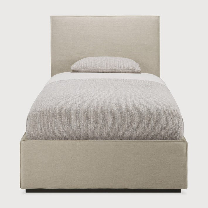 Relájese en la cama Revive, donde la comodidad se une a la practicidad. Con su cabecero de lino, fácilmente extraíble para limpieza en seco, encontrará aquí un espacio fresco y acogedor. Los detalles cosidos añaden un toque de refinada elegancia y crean un suave telón de fondo que inspira tranquilidad en el dormitorio.