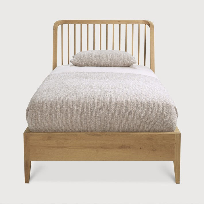 La colección Spindle se inspiró en la tradicional rueca de hilar e incorpora radios perfectamente alineados en el cabecero. Las patas ligeramente en punta y los bordes redondeados añaden una calidad suave y sensual a esta hermosa colección de dormitorio.