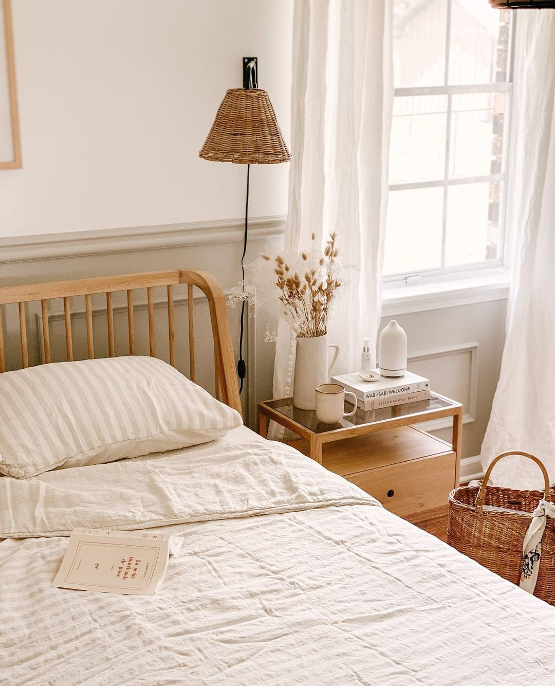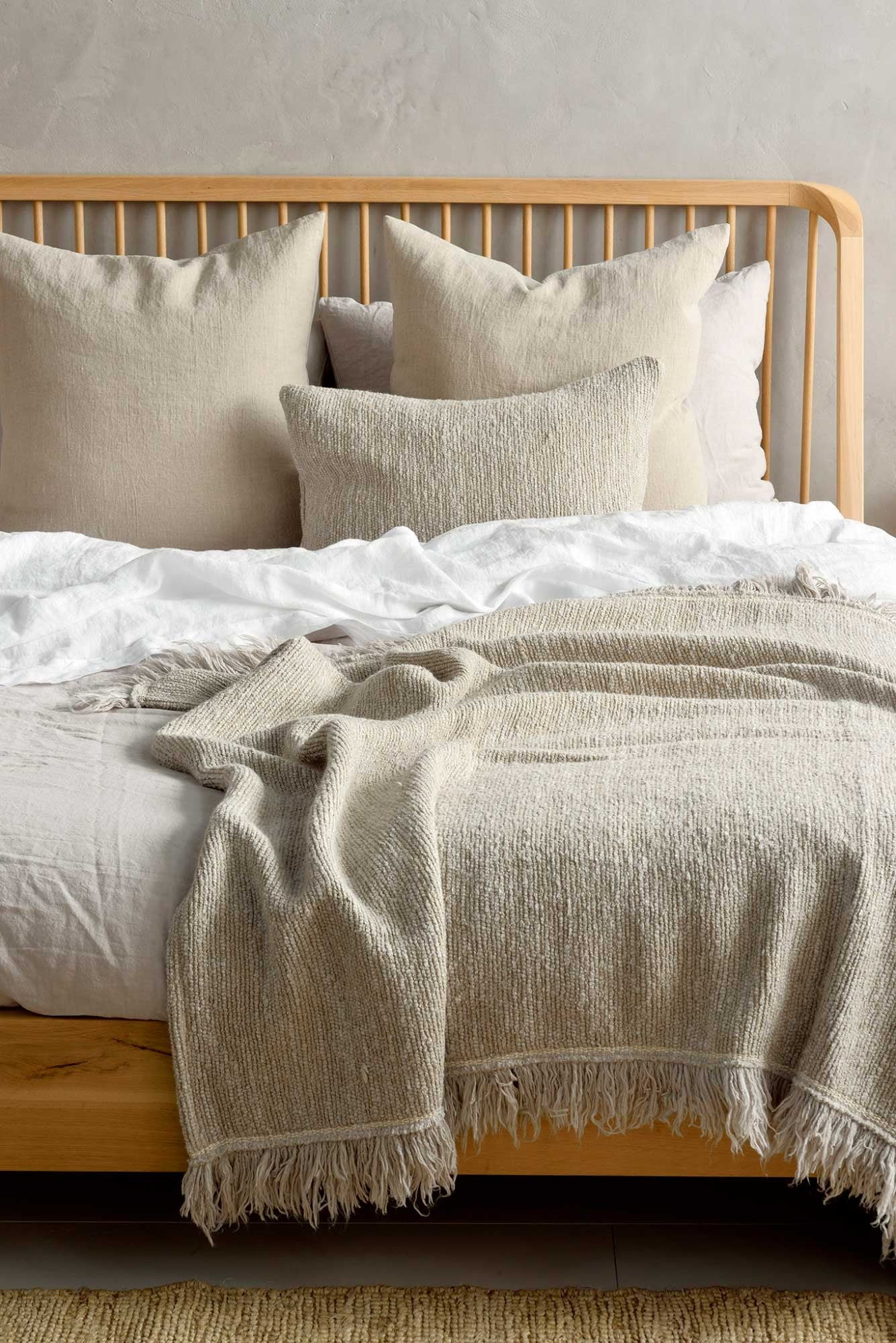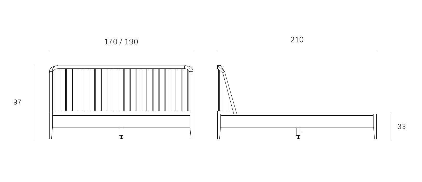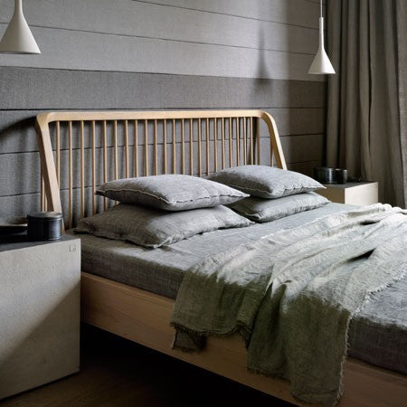La Cama Spindle de Roble está inspirada en las ruecas tradicionales. Radios alineados en el cabezal, patas que se estrechan ligeramente y cantos redondeados. Colchón y somier no incluido.