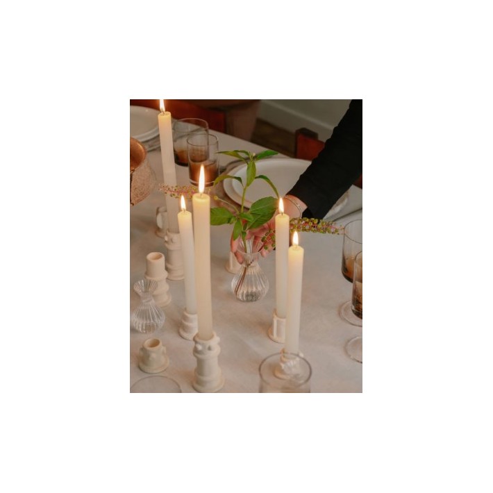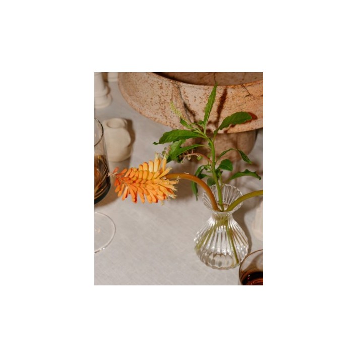 Además de la colección de vajilla, hay un juego profesional de café y té y una línea de cristalería fina; Desde copas de vino, pasando por copas de champán, hasta copas de agua y cóctel. Algunos de ellos son una edición especial en vidrio acanalado, con pliegues tiernos a medida que las costillas de una ballena se desvanecen gradualmente hasta el borde del vaso.