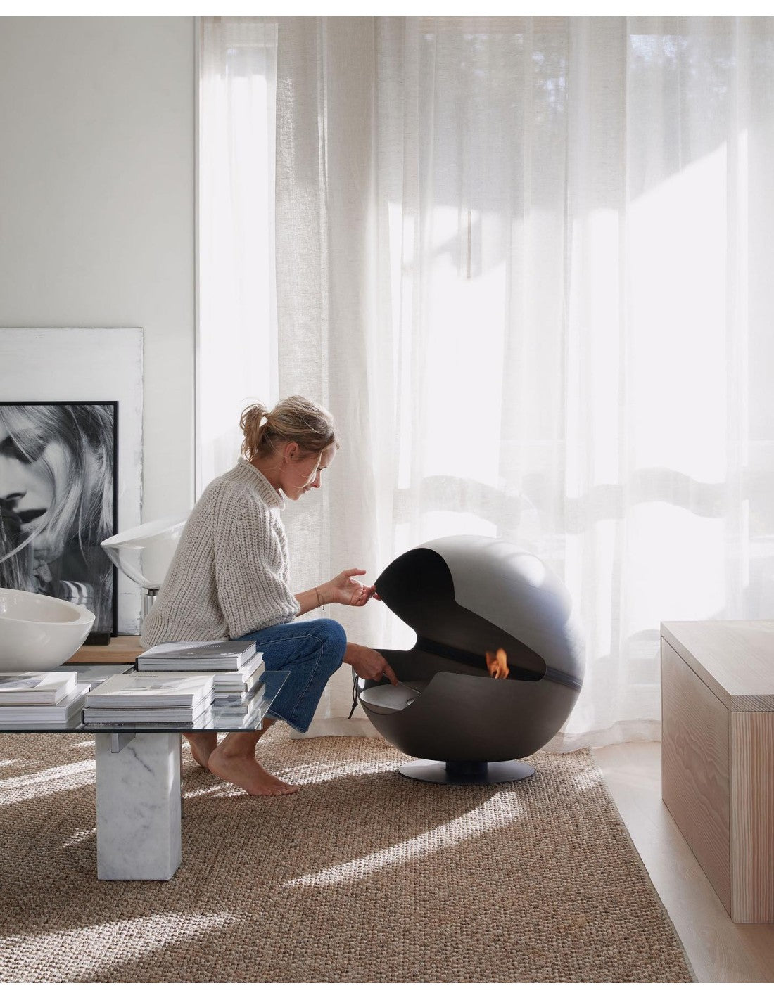 Globe está equipado con el quemador de bioetanol más avanzado del mercado, que se quema sin humo, hollín o cenizas. Produce un calor agradable y el tamaño de la llama es infinitamente ajustable. La estructura alrededor del quemador está disponible en una variedad de acabados: Hierro fundido negro, o para un aspecto más exclusivo, hormigón moldeado de MBJ Design en dos colores: Mystic Graphite o Mystic Sand.