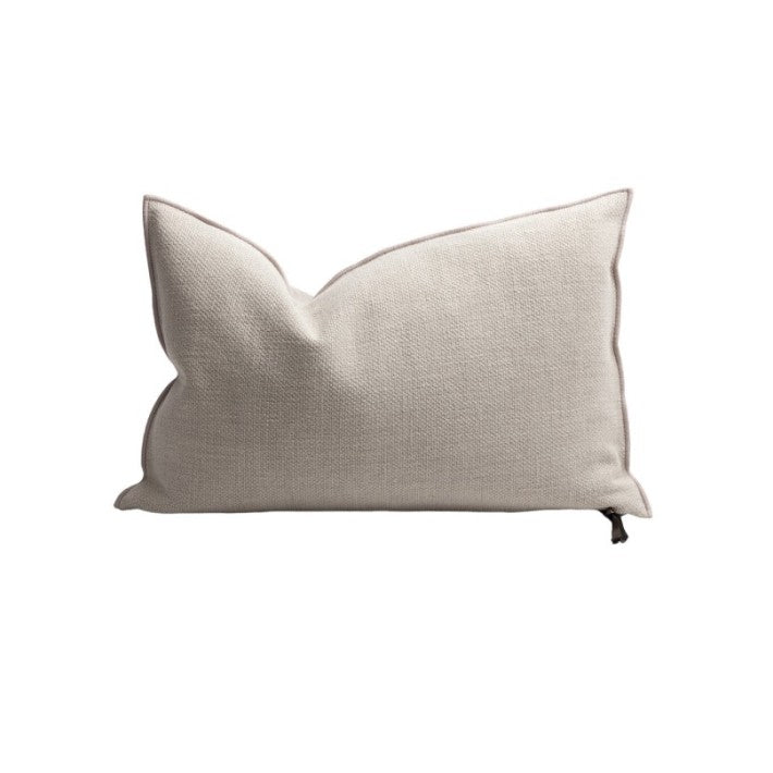 Este cojín de lino lavado en tono crème, de generoso tamaño (60x90), pertenece a la icónica colección Lin Stone Washed de Maison de Vacances.