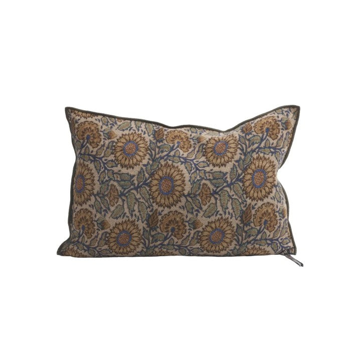 Cojín Vice Versa Lino Wabi Sabi Imprimé, Les Tournesols Cobalt