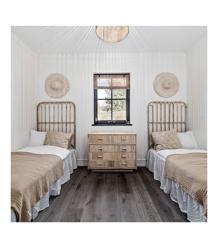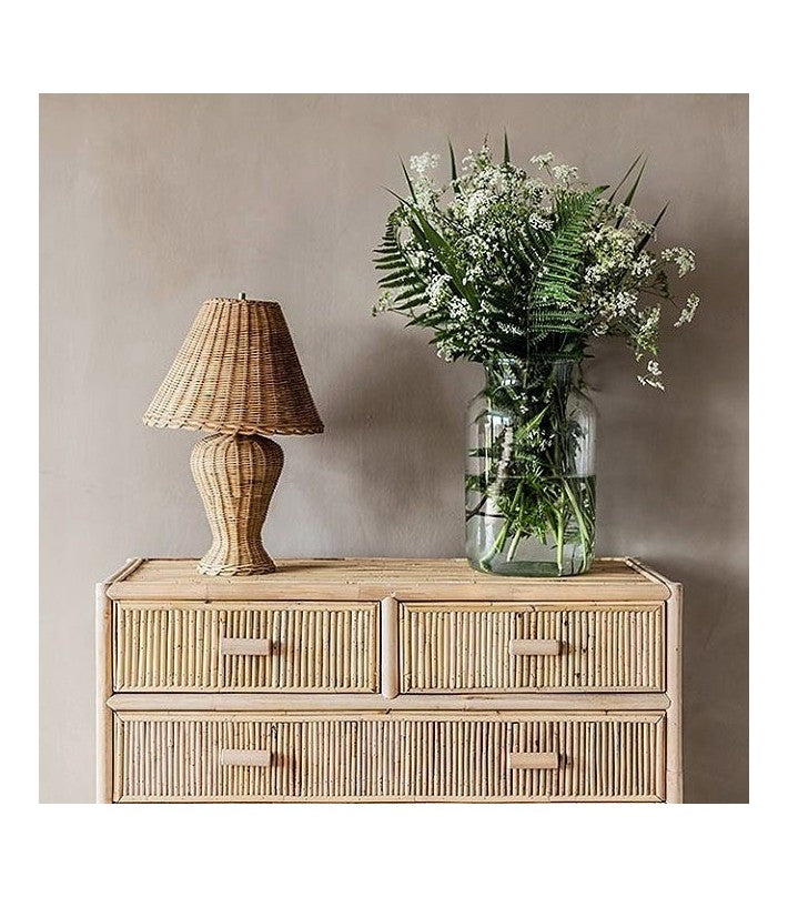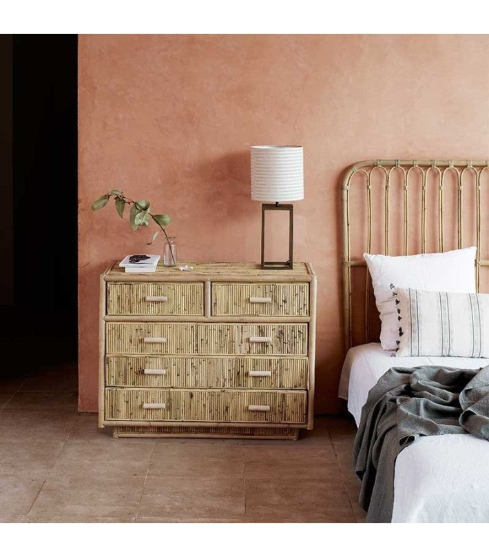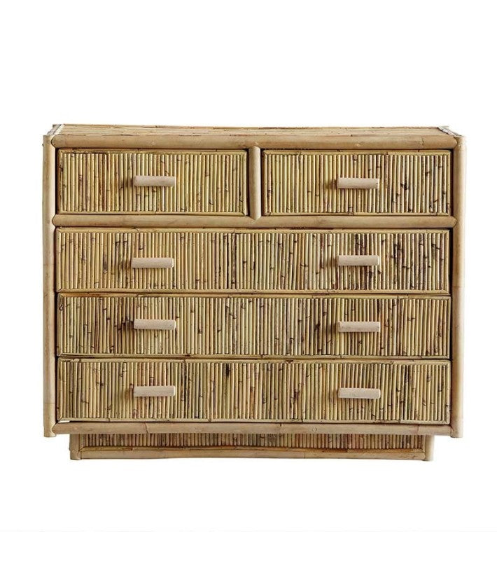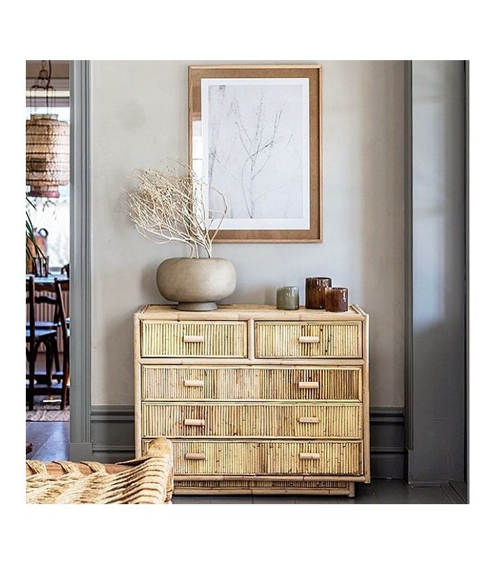 Cómoda fabricada en ratán natural con dos cajones superiores y tres grandes cajones inferiores para almacenaje.