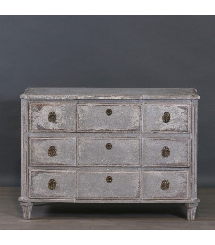 Cómoda de madera natural de pino que se compone de tres cajones con tiradores de latón redondos. Ideal para un perfecto almacenaje.