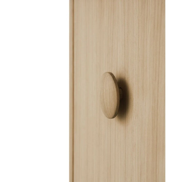Fabricada en MDF con chapa de roble natural y roble macizo aceitado con pigmento blanco
