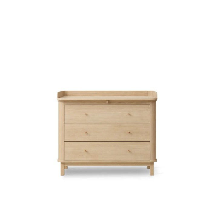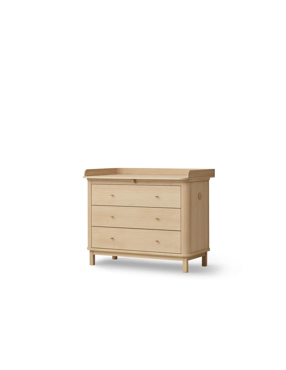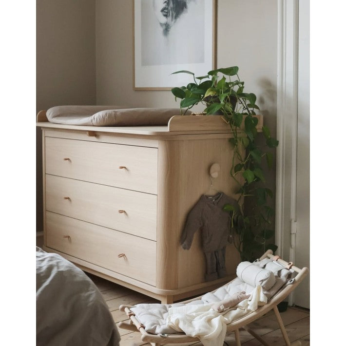 La cómoda Wood de Oliver Furniture con 3 cajones y acabado en roble es una elección elegante y práctica para el dormitorio del bebé. Su estética serena y sus líneas redondeadas aportan calidez natural a cualquier espacio, mientras su interior funcional garantiza orden sin renunciar a la belleza. Fabricada en Europa bajo estrictas normas de seguridad, es una pieza pensada para durar y acompañar.