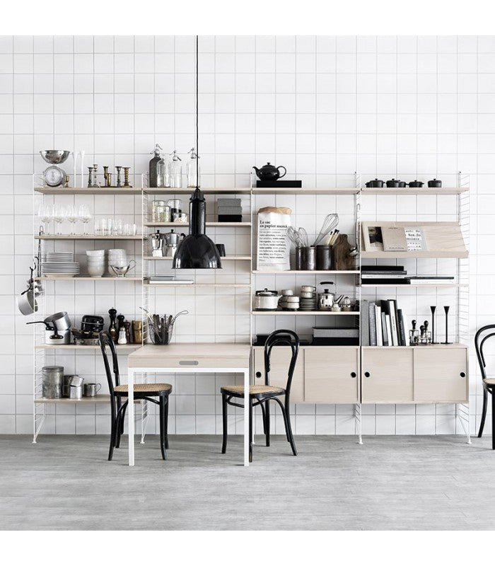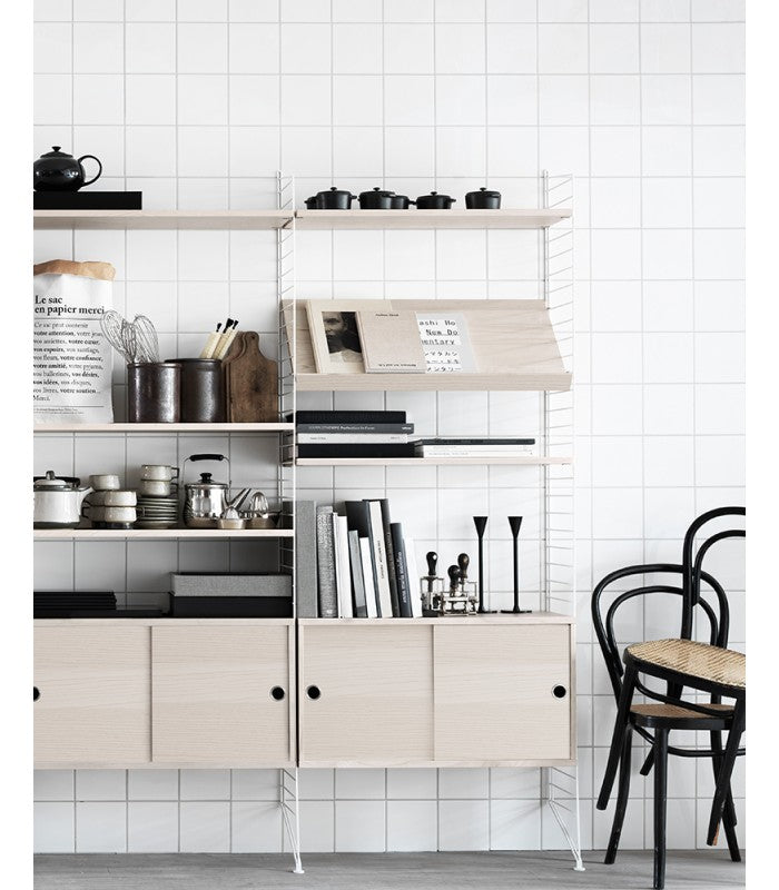 String Shelving es un sistema de almacenamiento altamente flexible que se presta a composiciones grandes y pequeñas.