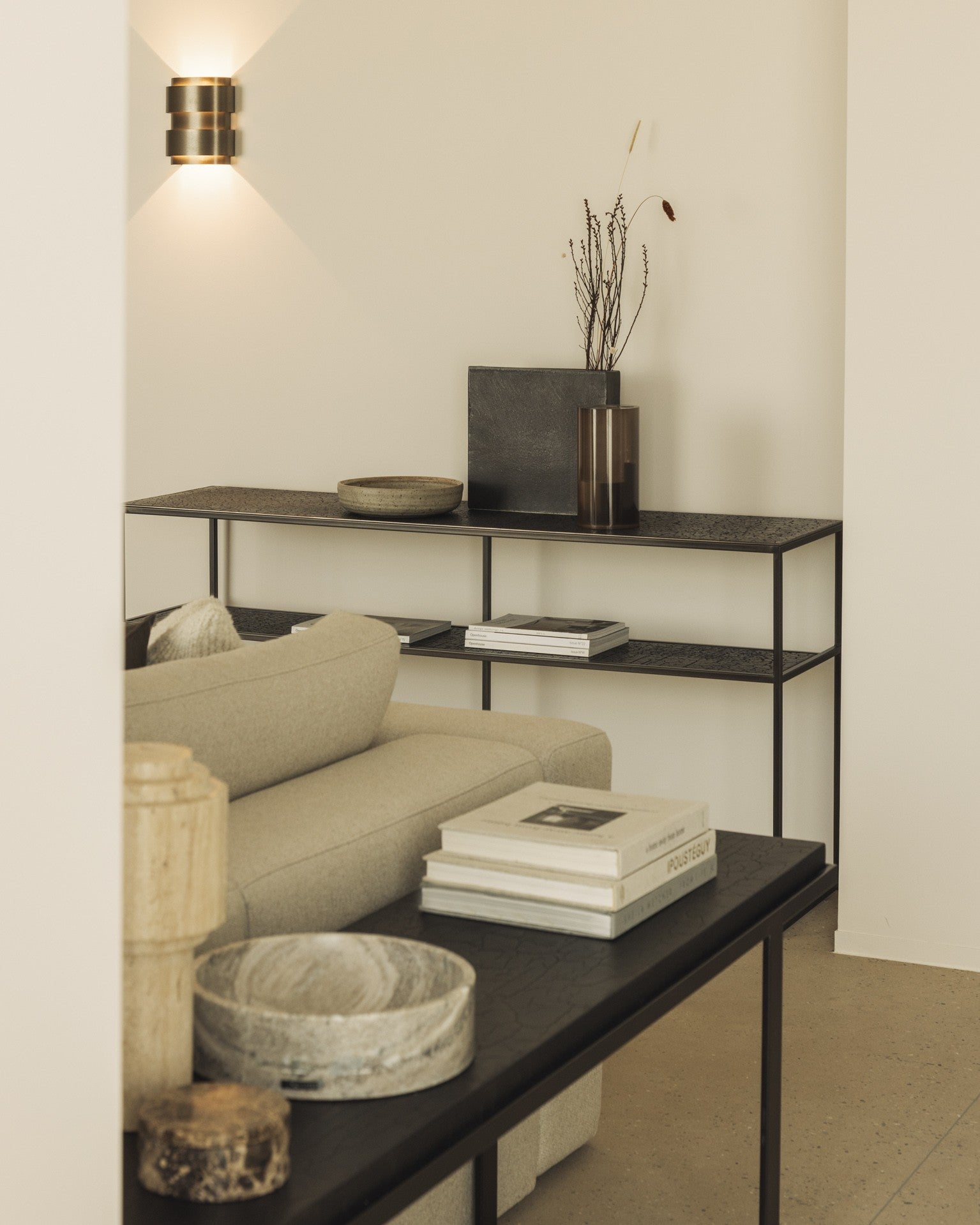 Consejo NOMAD: una pieza perfecta para aportar fuerza y personalidad a una entrada, pasillo o detrás de un sofá. Úsala como soporte de objetos esculturales o composiciones florales.