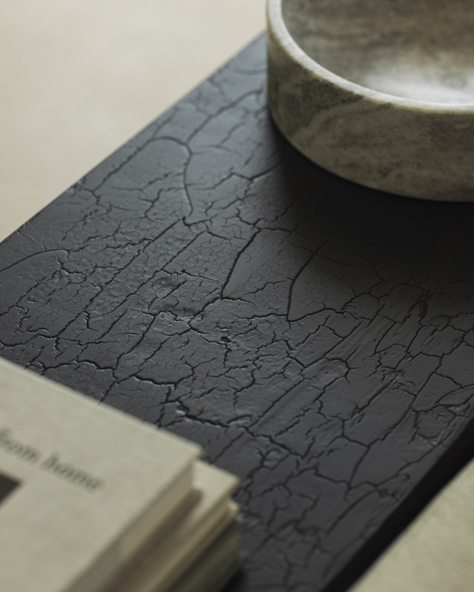 El acabado único de esta consola se logra mediante una mezcla artesanal de polvos minerales, pigmentos naturales y tierras, trabajados a mano y protegidos con un barniz ecológico a base de agua. Cada pieza es única, con texturas y matices que celebran la imperfección como arte.