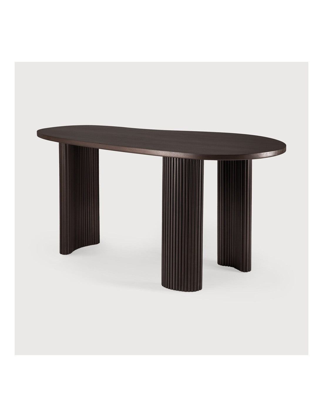 Fabricada en caoba teñida de marrón oscuro con un acabado barnizado.