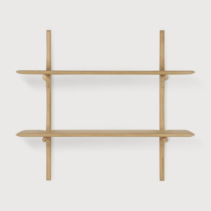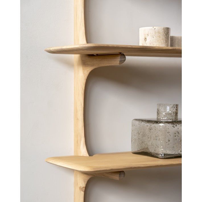 Las formas interesantes se descubren en este acabado pulido imperfecto, elegante y con estilo. Cada artículo de PI está acabado a mano para garantizar que se respete el carácter individual de la madera. La estantería de pared PI ofrece un espacio equilibrado para guardar los recuerdos más preciados.