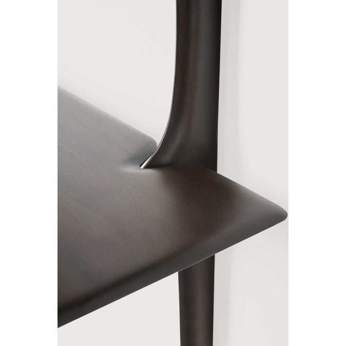 Fabricada en caoba teñida de marrón oscuro con un acabado barnizado.