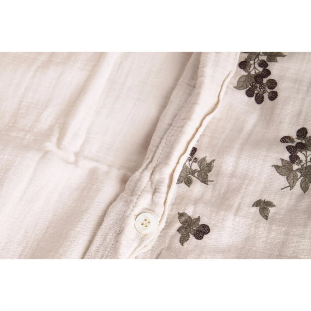 ¡La hermosa Blackberry es el último miembro de nuestra familia de muselinas florales! Con su perfecta base beige, frutos del bosque en tonos berenjena y hojas de color verde musgo, es un complemento imprescindible para cualquier hogar. La muselina es un material suave celestial con una textura hermosa que generalmente se usa para mantas envolventes, por lo que pensamos por qué no hacer juegos de cama con este material que se volverán más y más suaves con cada lavado. Nuestros juegos de cama de muselina están hechos con una maravillosa muselina de algodón 100% ligera y aireada de primera calidad con cierre de botón. Fabricado éticamente y certificado OEKO-Tex. Tamaño: 140x200 / 50x70 cm