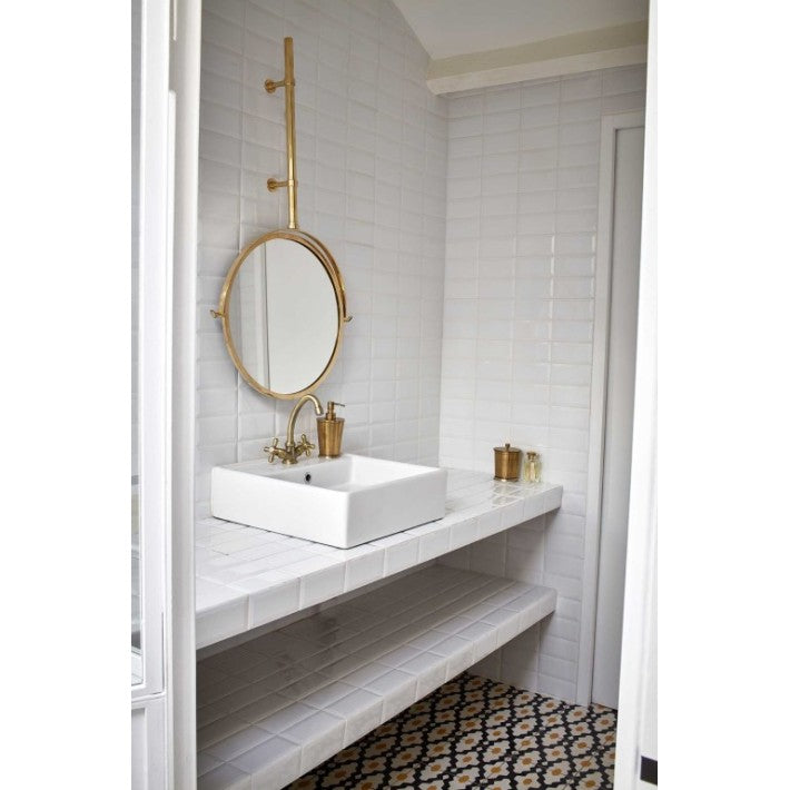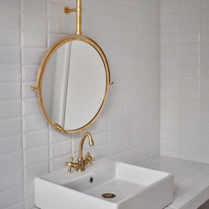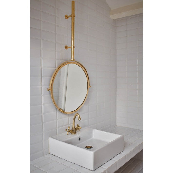 El espejo My Best Enemy de DCW éditions tiene un espejo redondo con un diámetro de 43,5 centímetros y una altura total de 100 centímetros. Puede elegir entre tres versiones diferentes para el espejo: níquel pulido, níquel cepillado o latón pulido.