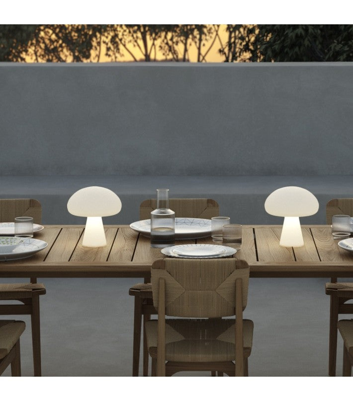 GUBI ha renovado esta icónica lámpara de mesa para que sea portátil y tenga una clasificación IP44, lo que la hace ideal para uso en exteriores. Con su vidrio opaco y capacidad de atenuación, la lámpara Obello proporciona una iluminación suave y ajustable que puede adaptarse a cualquier entorno. La lámpara conserva su esencia clásica, pero con un toque moderno y funcional.