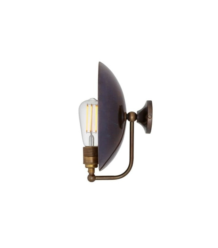 Este aplique de pared industrial crea un impresionante efecto visual en cualquier espacio residencial, minorista o comercial. Emanando calidez a través de su placa posterior patinada y sombreada, la lámpara de pared Cullen encarna la riqueza de su trabajo de latón. El reflejo del plato curvo de latón atrae la atención y te obliga a retroceder en el tiempo con su atractivo industrial. Esta luz de pared industrial se ve genial cuando se enciende con una bombilla estilo Edison, creando un reflejo cálido y dramático que cambia según la posición desde la que se ve. Las bombillas se venden por separado.