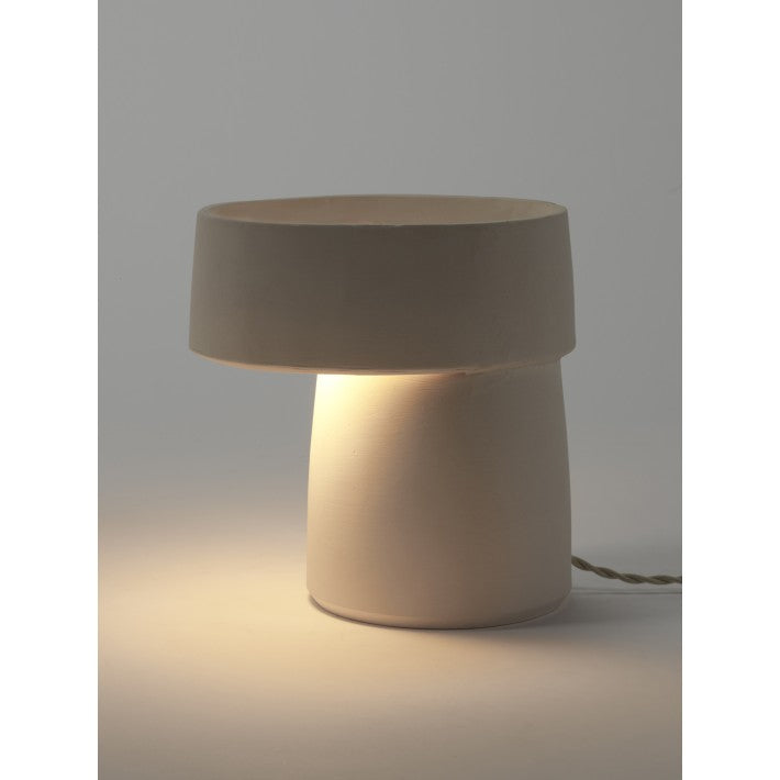 Con Romé, el ceramista Alex Gabriels ha diseñado una lámpara en cerámica blanquecina. Creada en su torno de alfarero, Romé se compone de dos cilindros, ambos cónicos, que posteriormente se han unido. El resultado es un diseño puro y elegante con algunos detalles ásperos que resaltan el carácter artesanal de la lámpara.