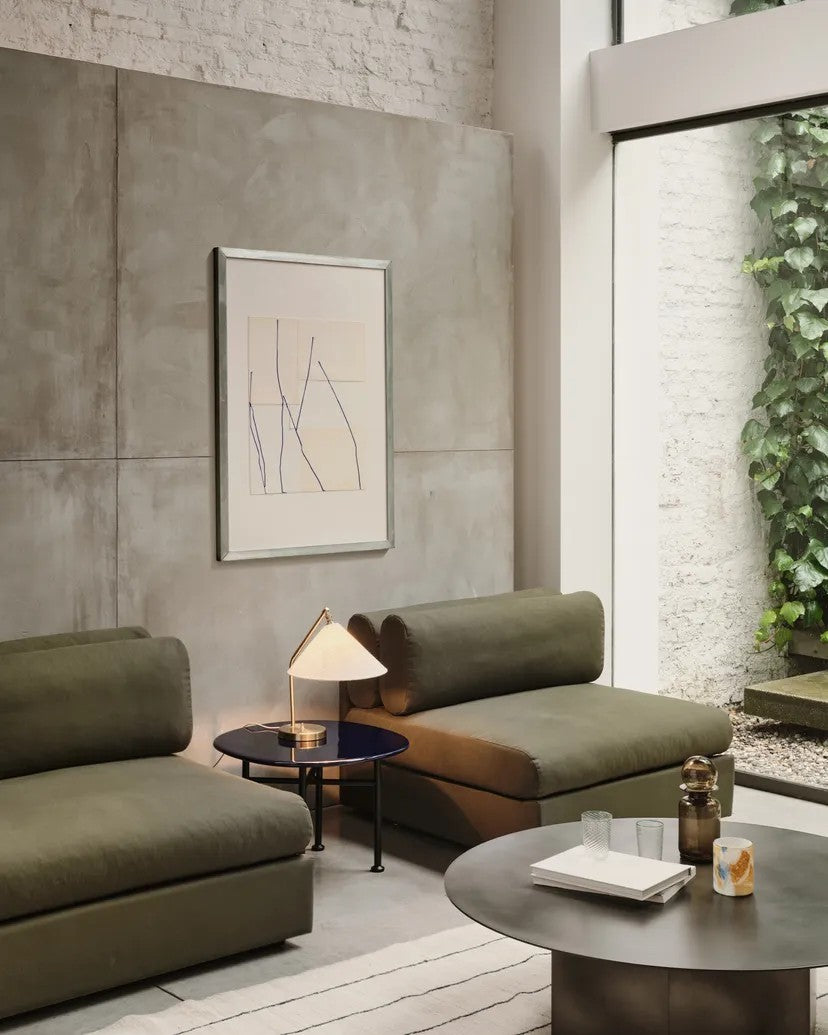 La emblemática lámpara de mesa Gräshoppa de la diseñadora sueco-estadounidense Greta M. Grossman cobra nueva vida en esta reedición exclusiva de GUBI, con una pantalla alargada en lienzo natural artesanal y una base de latón pulido. Su estética de inspiración modernista, líneas orgánicas y elegancia atemporal la convierten en una pieza clave para interiores contemporáneos y nostálgicos.