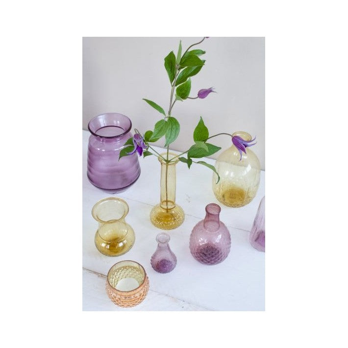Pequeño vaso hecho a mano de vidrio reciclado en un cálido color púrpura.