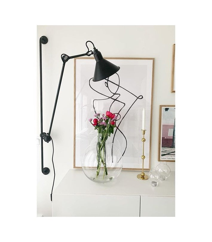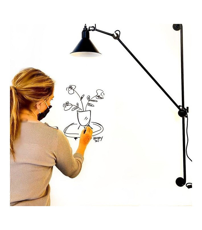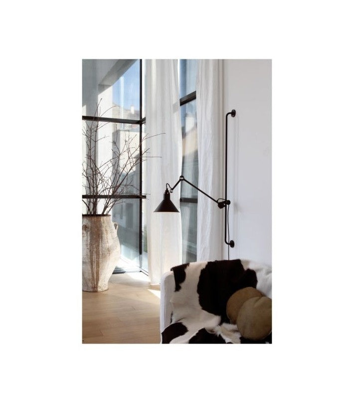 La lámpara de pared Gras Nº 214 tiene una barra larga sobre la cual su brazo puede deslizarse y moverse. Se puede modular como se desee para obtener la iluminación ideal.