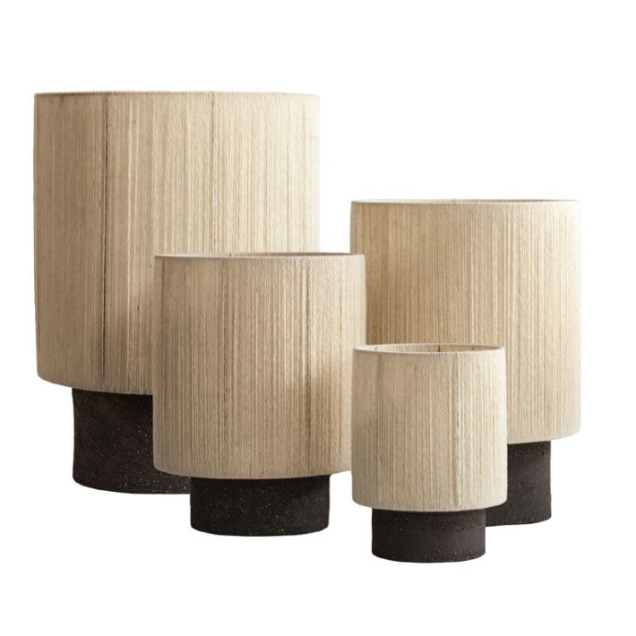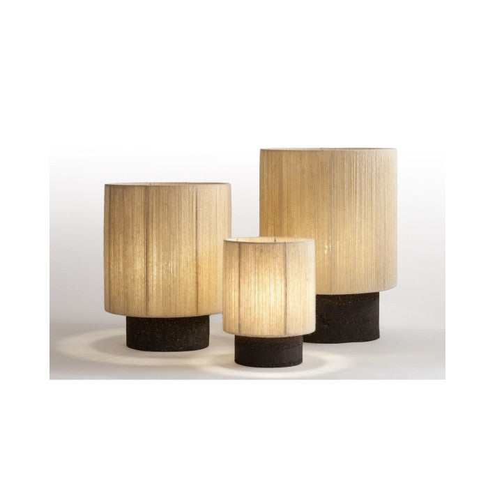 El pie está hecho de piedra arenisca de arcilla roja y su pantalla de lámpara en hilo de lana natural estirada a mano.