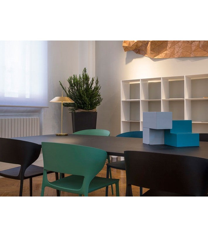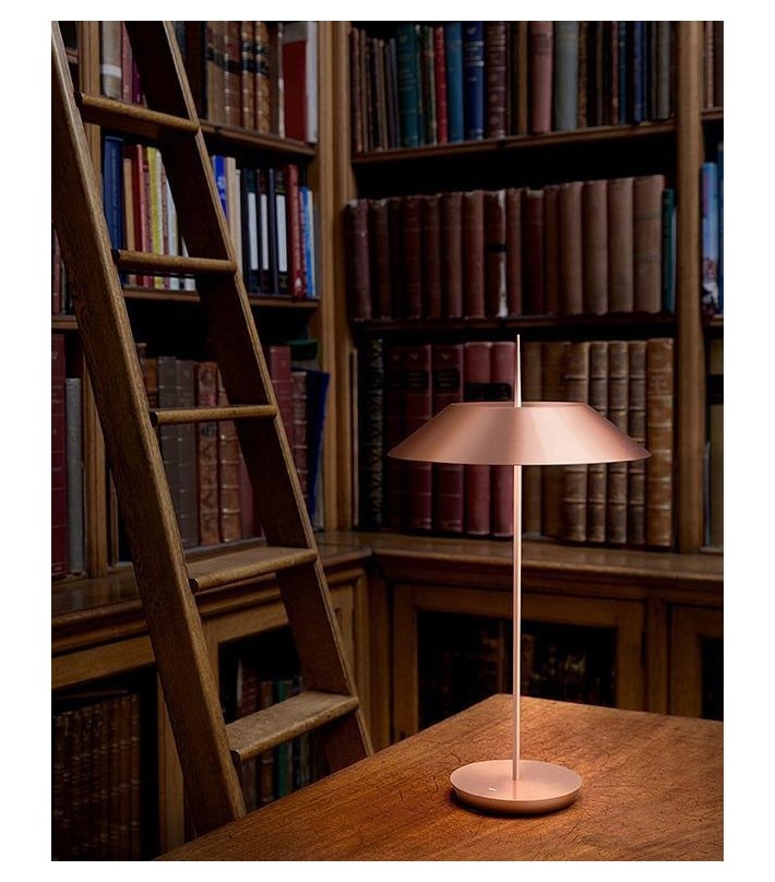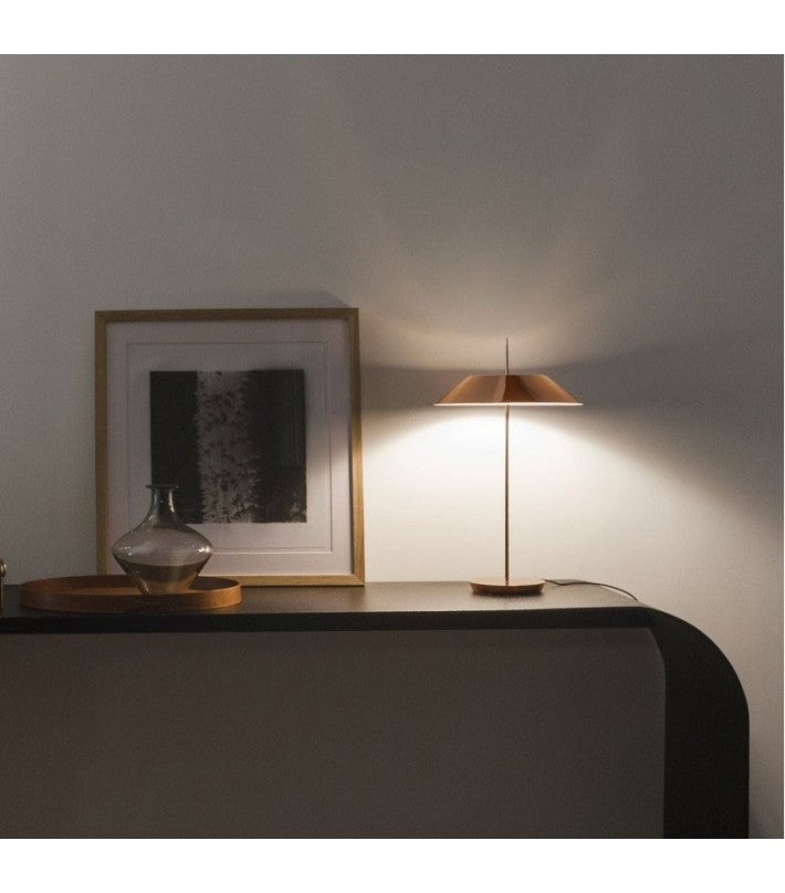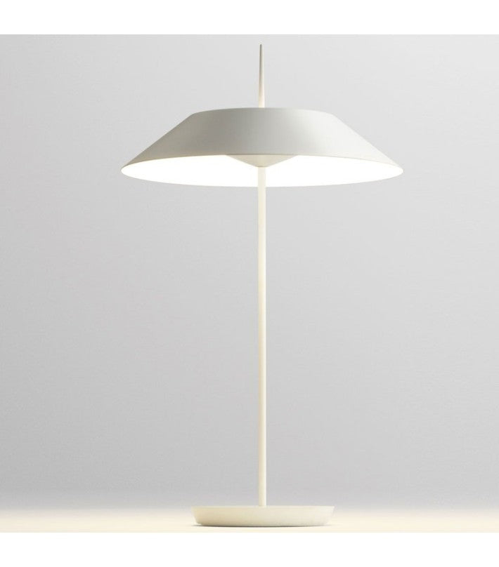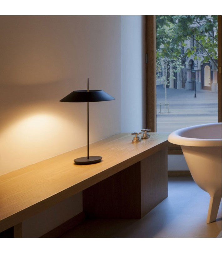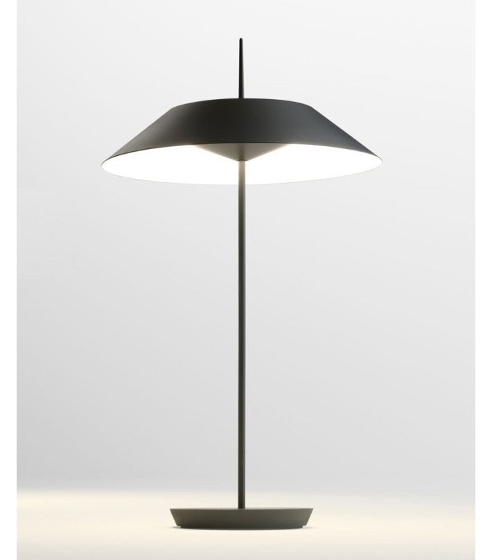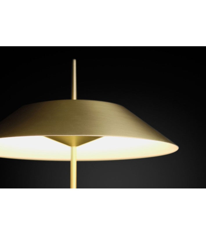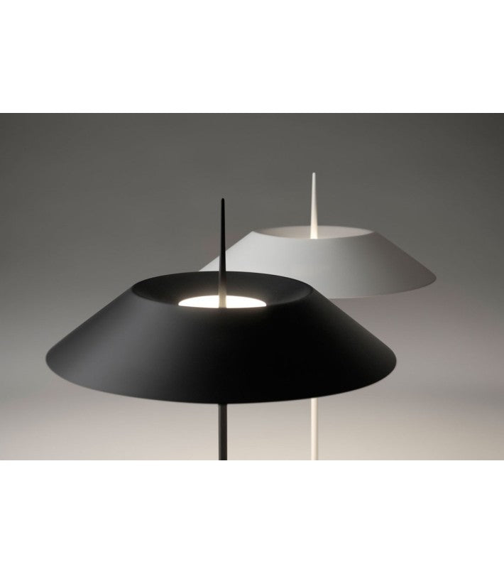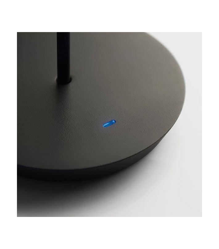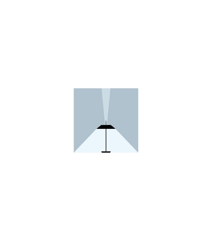 Materiales: Difusor de policarbonato; Pantalla y tubo vertical de acero; Base de zamak (aleación de zinc con aluminio, magnesio y cobre)