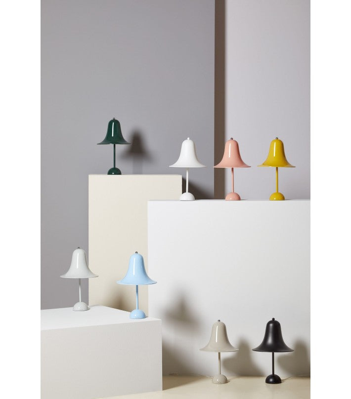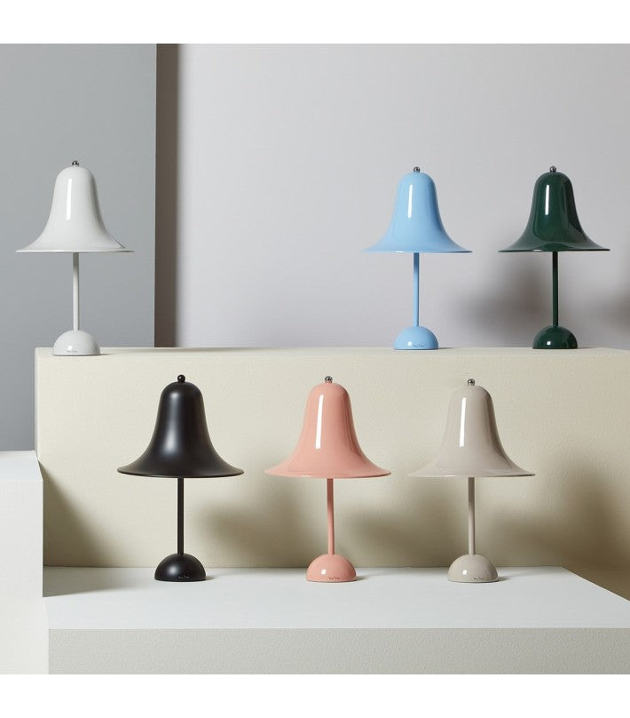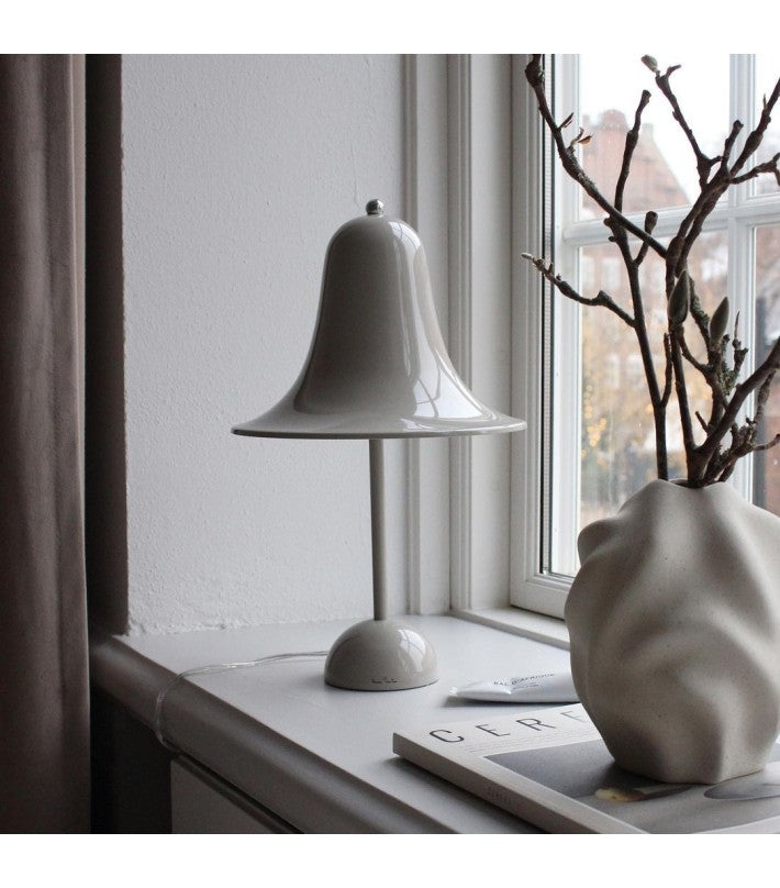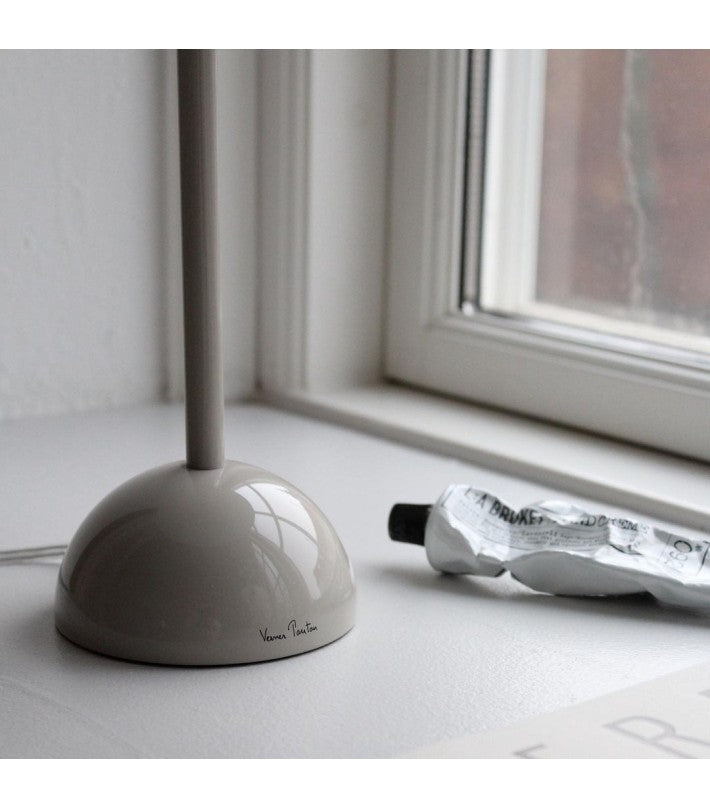 Lámpara de mesa que se distingue por su forma de campana. Realizada en color negro cromado con base de aluminio. Cable téxtil color negro con interruptor, 230 cm.
