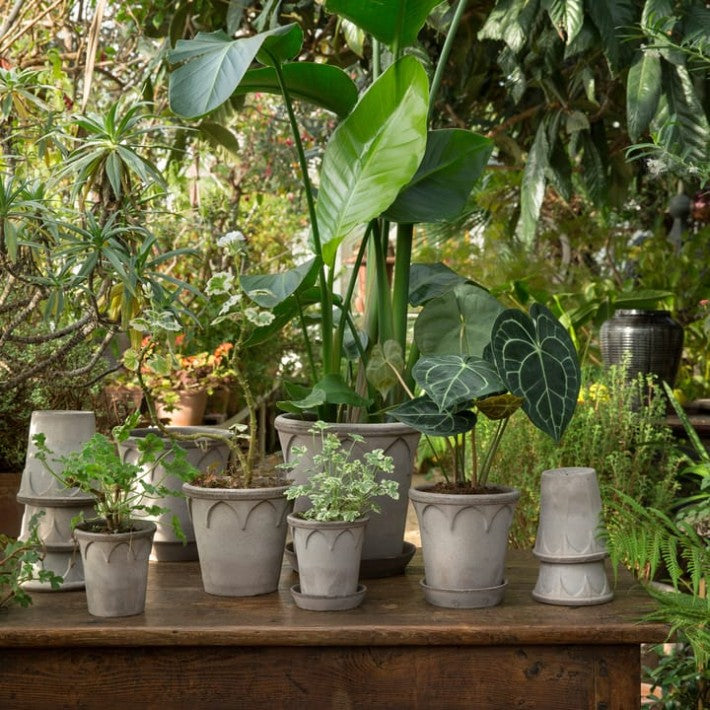 La primera maceta de Bergs Potter. Apodado "Castle Pot" e inspirado en los producidos originalmente en el Castillo Real Danés de Fredensborg en 1860. Disponible en acabados crudos y esmaltados. Diseñado en Dinamarca y hecho a mano en Italia a partir de arcilla de autor. Incluye orificio de drenaje y platillo tratado con silicona o acristalado a juego, que es resistente al agua. La terracota de alta cocción es duradera y permeable, desarrollando una pátina única con el tiempo. Más adecuado para plantas que prefieren secarse entre riegos. La loza vidriada está hecha para durar y no es porosa. Más adecuado para plantas que prefieren permanecer húmedas entre riegos. Destinado para uso en interiores. Se puede usar al aire libre estacionalmente (primavera-otoño). No es a prueba de heladas para los inviernos canadienses.