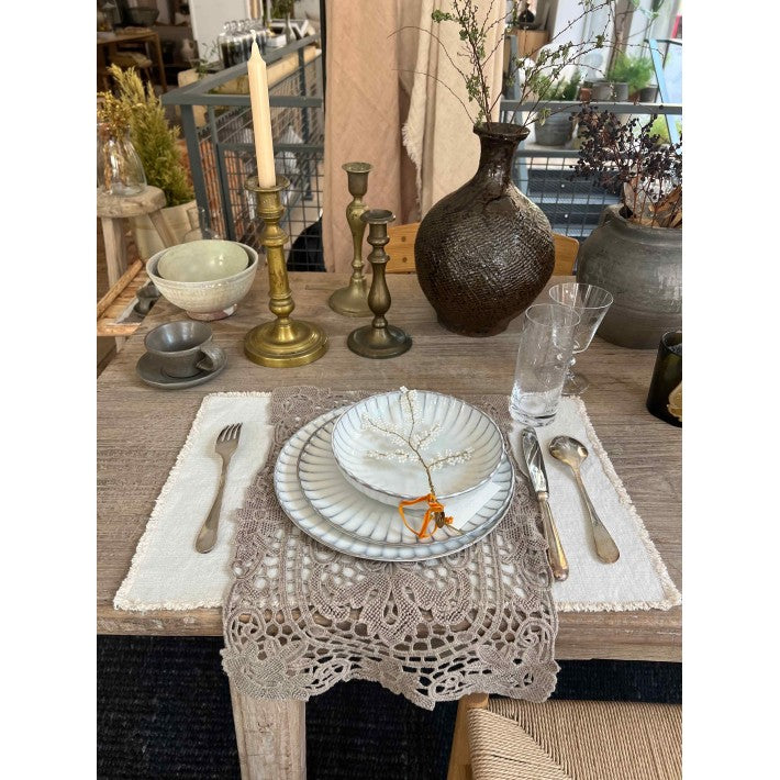 El mantel individual Luna, en algodón 100% y color topo, combina bordado tipo ojo con un acabado lavado a la piedra que suaviza su textura y aporta un aire relajado pero sofisticado. Ideal para proteger y embellecer la mesa en el día a día o en ocasiones especiales. Un básico natural con sello artesanal.