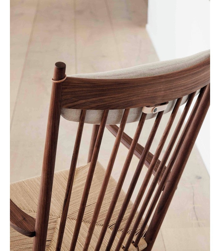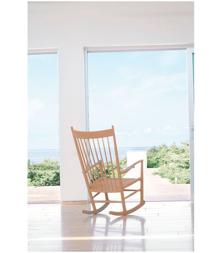Fue lanzada por FDB Muebles en 1944. Hans J. Wegner enfatizó la libertad de movimiento y la ergonomía en sus diseños de sillas, y esto es particularmente evidente en la J16. Disponible en diferentes maderas, asiento en cuerda natural o negro.