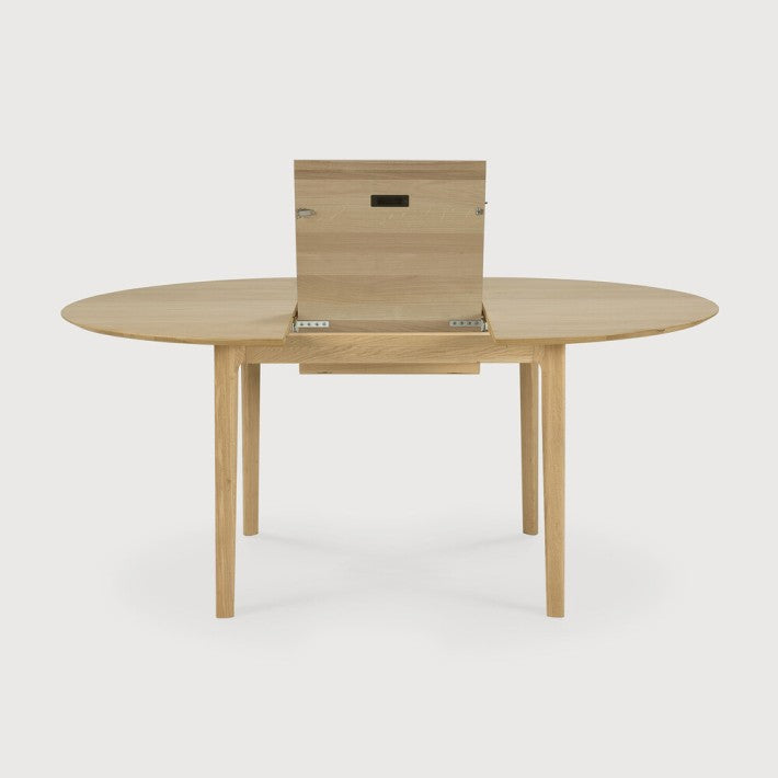 La mesa de comedor redonda extensible de roble macizo Bok ofrece la solución perfecta para cenar de forma adaptable en un espacio reducido. Con una extensión alojada internamente, la mesa redonda de cuatro plazas se adapta fácilmente a más personas. La icónica forma ligera de Bok y su sólida construcción la hacen atemporal para disfrutarla en los años venideros.