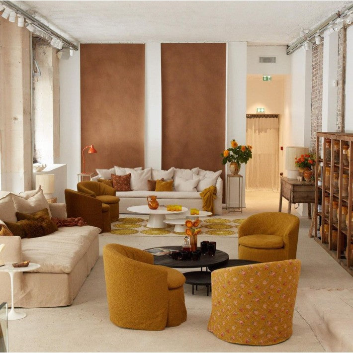 Por supuesto, lo hemos equipado con todas las características de un BOHO: sistema de resortes dobles, espumas de alta resiliencia, cojín de asiento de plumas... Pero, para aligerar su silueta y evitar la necesidad de un cojín decorativo, hemos reducido su profundidad y reforzado el acolchado del respaldo para garantizar un confort óptimo.