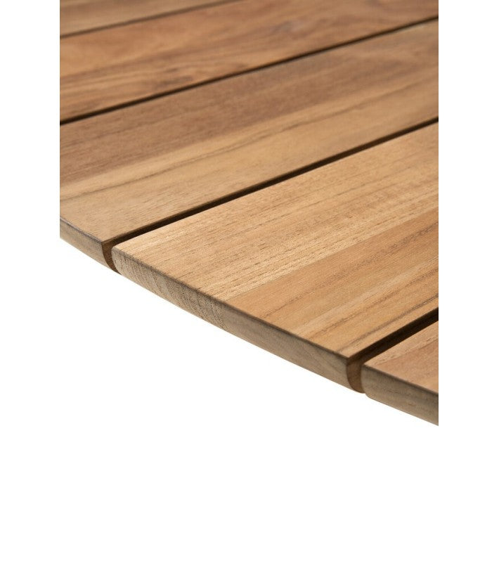 Nuestra mesa de comedor Circle tiene como objetivo inspirar a sus seres queridos a pasar un poco más de tiempo en la mesa. Sus sólidas patas se entrelazan en perfecto equilibrio, mientras que el diseño del tablero ranurado hace que la vida al aire libre sea un simple placer.