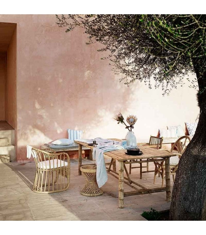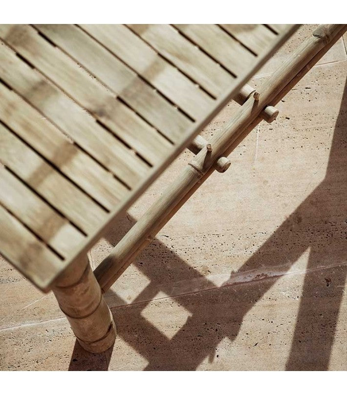 Mueble apto para uso en exterior al descubierto e interior. Para prolongar la vida de tus muebles de bambú, te indicamos cómo realizar el mantenimiento para exterior e interior aquí.