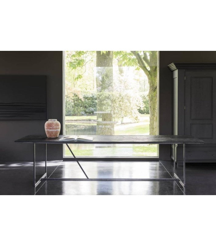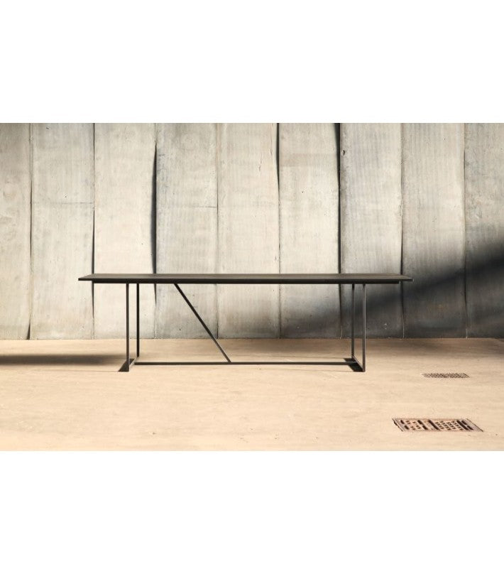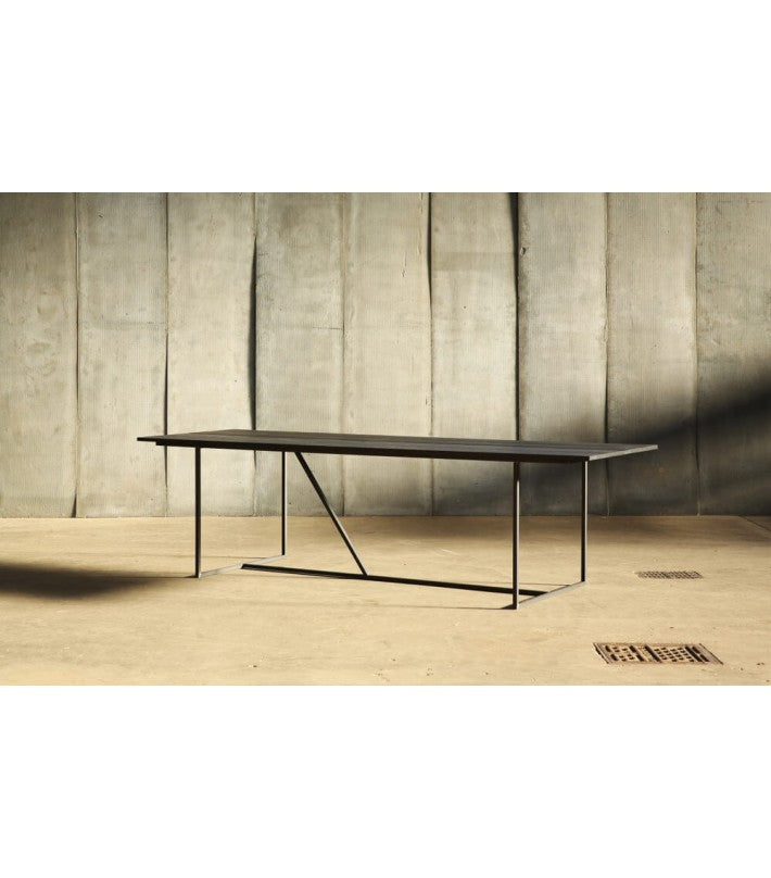 Mesa de comedor metálica y roble macizo tintado negro
