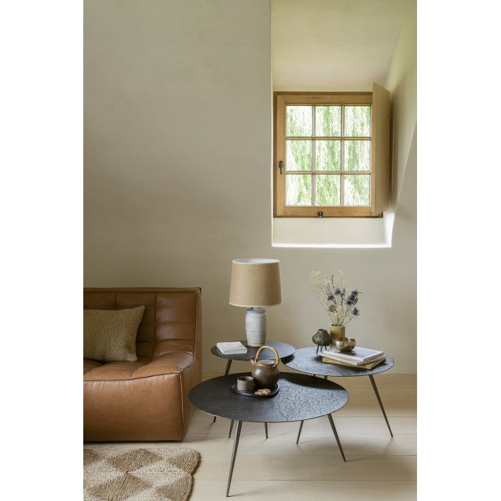 Mesa de centro creada y moldeada a mano por artesanos. Los polvos minerales naturales y los pigmentos de color se mezclan para formar los tonos terrosos y la textura única de la mesa.