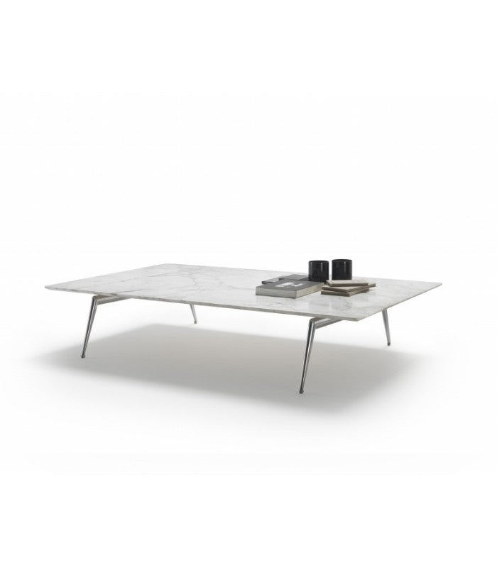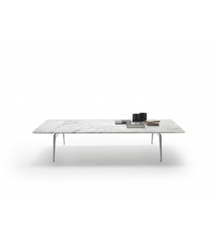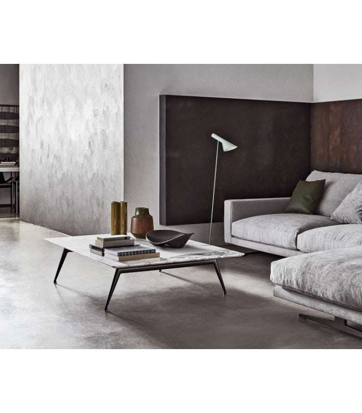 La familia de mesas de centro Este, originalmente diseñada como un complemento ideal para los sofás del mismo nombre, revela en realidad una fuerte personalidad que permite que estas mesas acompañen con estilo y elegancia a todos los asientos de la colección Flexform. La elección de materiales sofisticados es un contrapunto al diseño puro y esencial. Las bases reflejan el diseño de las de los sofás y están hechas de metal en los acabados satinado, cromado, bruñido, cromado negro y champán. Los tableros están disponibles en las versiones de madera –nogal americano o fresno barnizados una amplia gama de refinados tonos–, lacados en una original paleta de colores o en mármoles preciosos como Calacatta Oro, Emperador, Negro Marquina y Blanco Carrara.