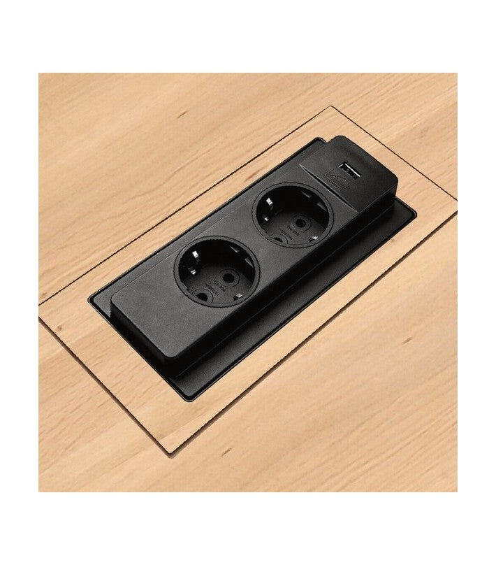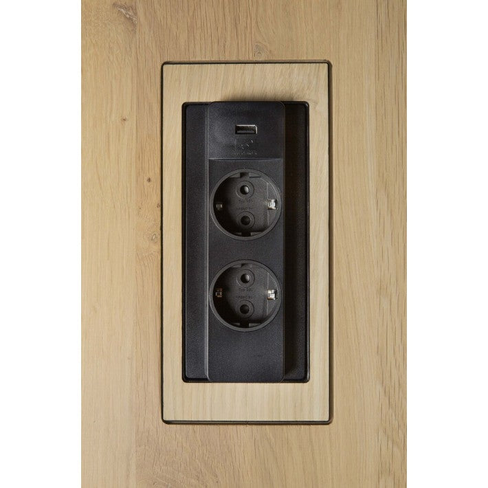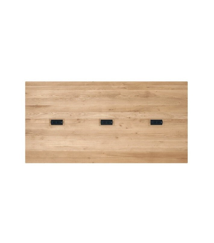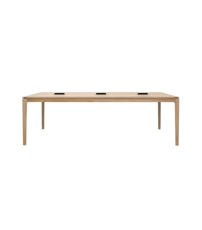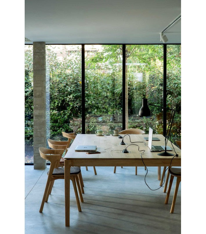 El escritorio Bok cowork de Alain van Havre es perfecto para un espacio de coworking. Su diseño más amplio permite que dos personas se sienten una frente a la otra con mucho espacio para ambas. Tres conjuntos de tomas de corriente están integrados en el diseño. Una vez que haya terminado, puede bajar los enchufes directamente en la mesa, al ras de la superficie lisa.