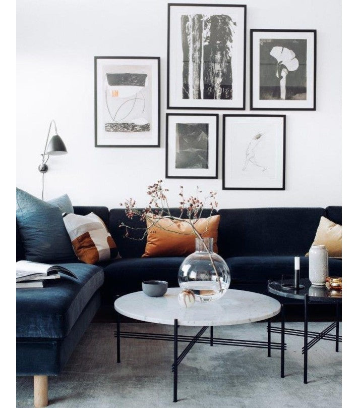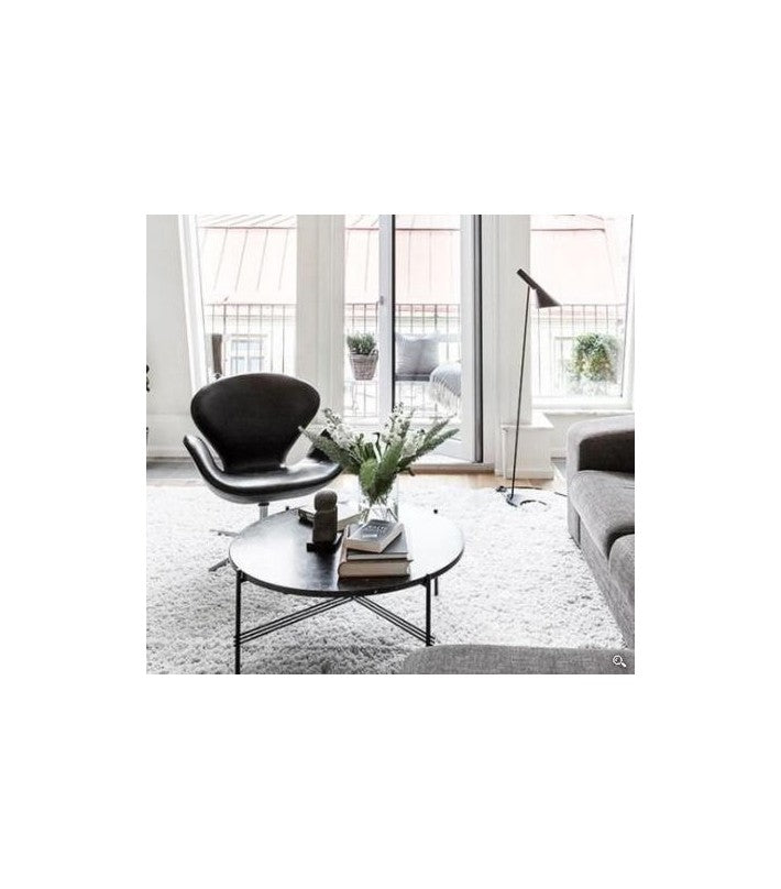 La sencillez y el funcionalismo escandinavo se fusiona con la tradición danesa. Mesa disponible en diferentes medidas y sobre en mármol disponible en varios acabados. Estructura en metal lacado negro.