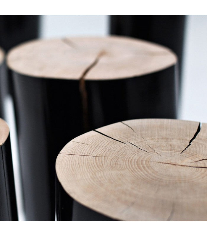 Tronco de haya con el exterior lacado en negro o blanco brillante.